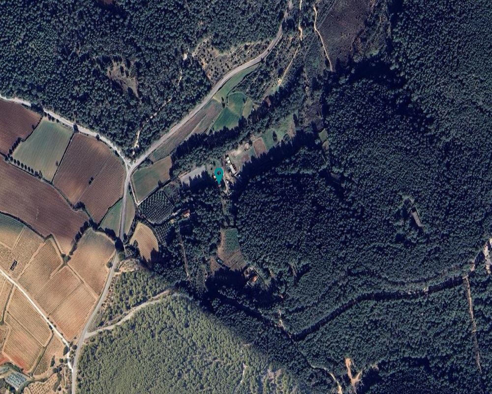 La finca está situada en las proximidades del Parque Natural del Foix, aunque no forma parte de él al estar fuera de sus límites. Se encuentra en una zona no urbanizable, destinada a la protección agrícola, rodeada de campos de viñedos y campos de secano, lo que garantiza un entorno rural y tranquilo.