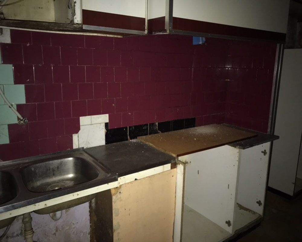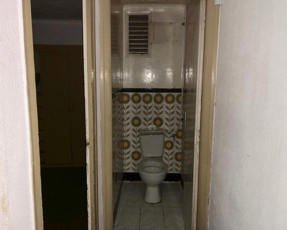 Cuenta con puerta de entrada normal, ventanas de madera, persianas de plástico, cocina a reformar, armarios empotrados, pintura en gotelé, solados de plaqueta, sanitarios completos. La vivienda necesita de reforma. Se encuentra ubicada en una zona céntrica en una calle peatonal.