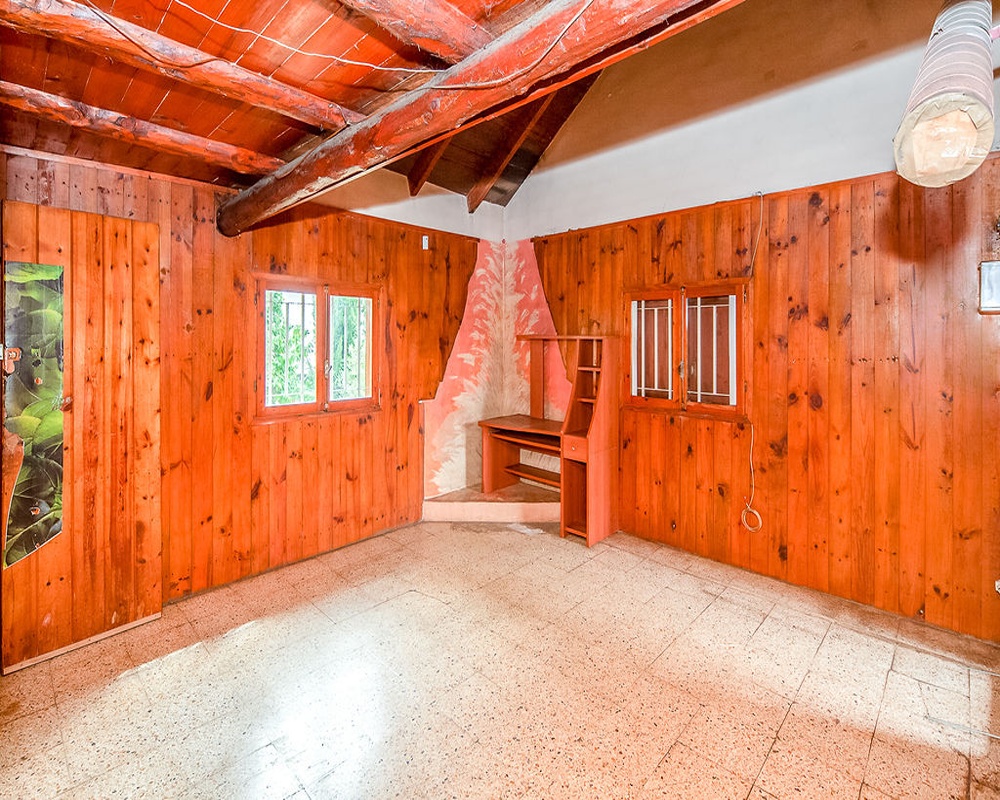 Se trata de un chalet construido en el año 1975, cuenta con una superficie de 63 m² distribuida en 2 dormitorios, 1 cuarto de baño, cocina y comedor. Se encuentra en una parcela ajardinada de uso privado.