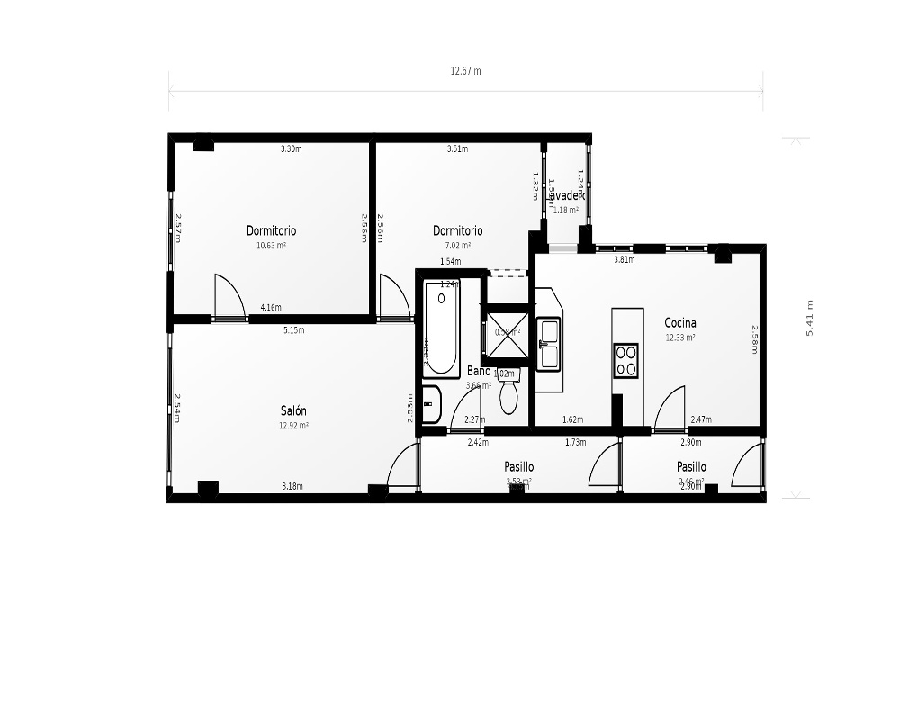 La vivienda cuenta con un espacioso salón con ventanal que permite la entrada a gran cantidad de luz natural, espaciosa cocina office con bancada y salida a lavadero/galería. Tiene baño completo con bañera de hidromasaje y dos amplias estancias más.