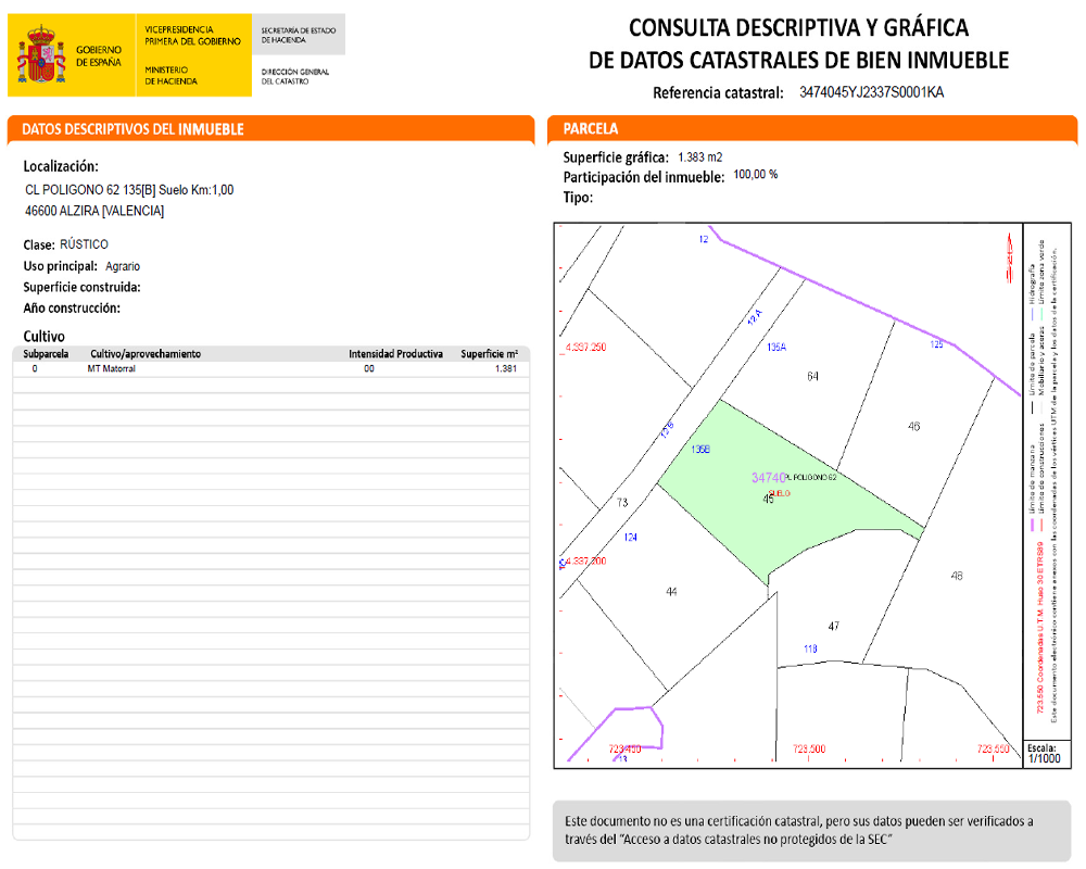 - Referencia catastral: 3474045YJ2337S0001KA.