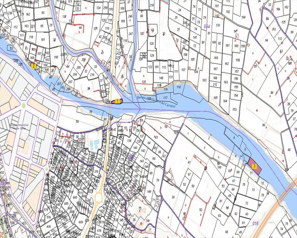 -Tienen forma irregular y las parcelas que están en el interior de cauces o en su ribera, en este caso, el barranco del Carraixet.