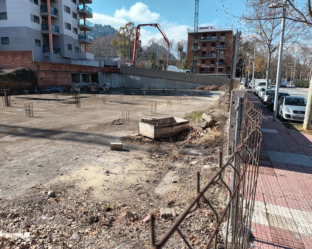 Suelo urbano sobre el que se pretendía construir un edificio de viviendas cuyas obras se paralizaron en el forjado situado a cota cero.
